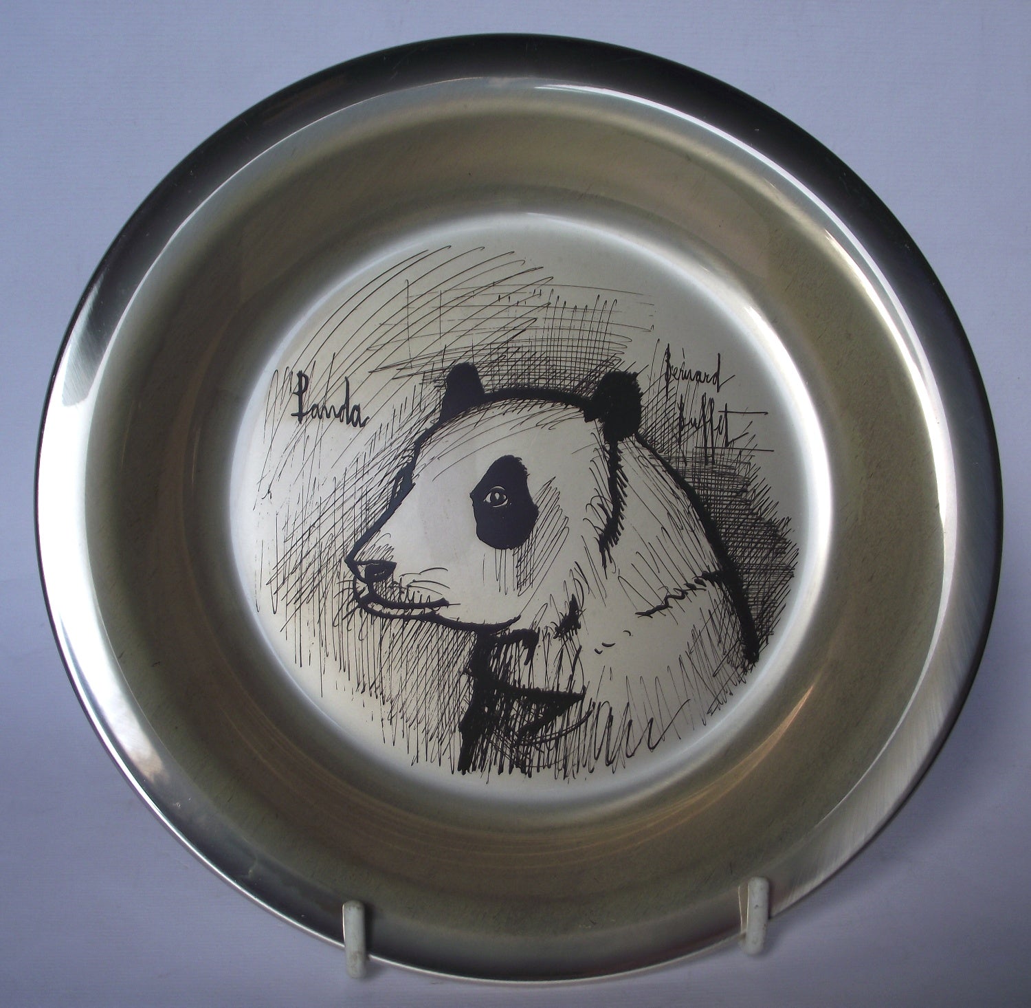 The panda was one of a limited edition set of five sterling silver “Wildlife Series” plates (along with a gazelle, a giraffe, a rhinoceros and a lion) produced by French artist Bernard Buffet between 1973 and 1978.